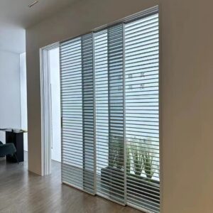 Louvered Glass Sliding Partition | Modern Horizontal Striped Room Divider